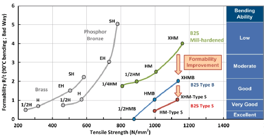 Die neuen werksgehärteten Zustände Berylco 25 „Type-B“ und „Type-S“ wurden speziell entwickelt, um die Formbarkeit zu verbessern.